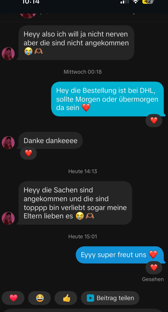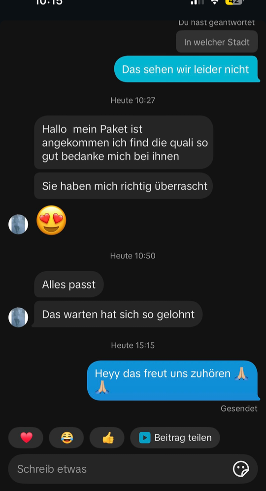Sollte es unerwartet länger dauern, kannst du uns jederzeit schreiben – wir prüfen den Sendungsstatus direkt beim Versanddienstleister.